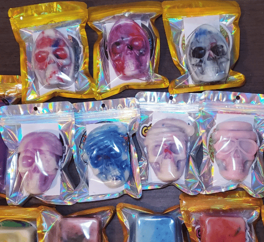 Hey, welcome to Grin 'n Grind! Every skull is handmade in small batches, crafted individually so no two are ever alike. All new Skulls and Mystery Skulls have been upgraded to approximately 90 grams each. Check my Instagram for pics and vids of Skulls not listed here. Want it pure, no dyes or scents? Go for The Puritan Skulls